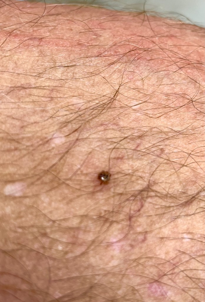 The two keys for tick removal are to remove the entire tick (you don’t want to accidentally snap off its head and leave it under your skin) and to prevent the tick from regurgitating its saliva into your skin while you do it. Note also that most experts no longer recommend the method I was taught as a Boy Scout, of heating the tip of your tweezers with a lighter and lightly touching the tick before pulling it out to make it let go of your skin.