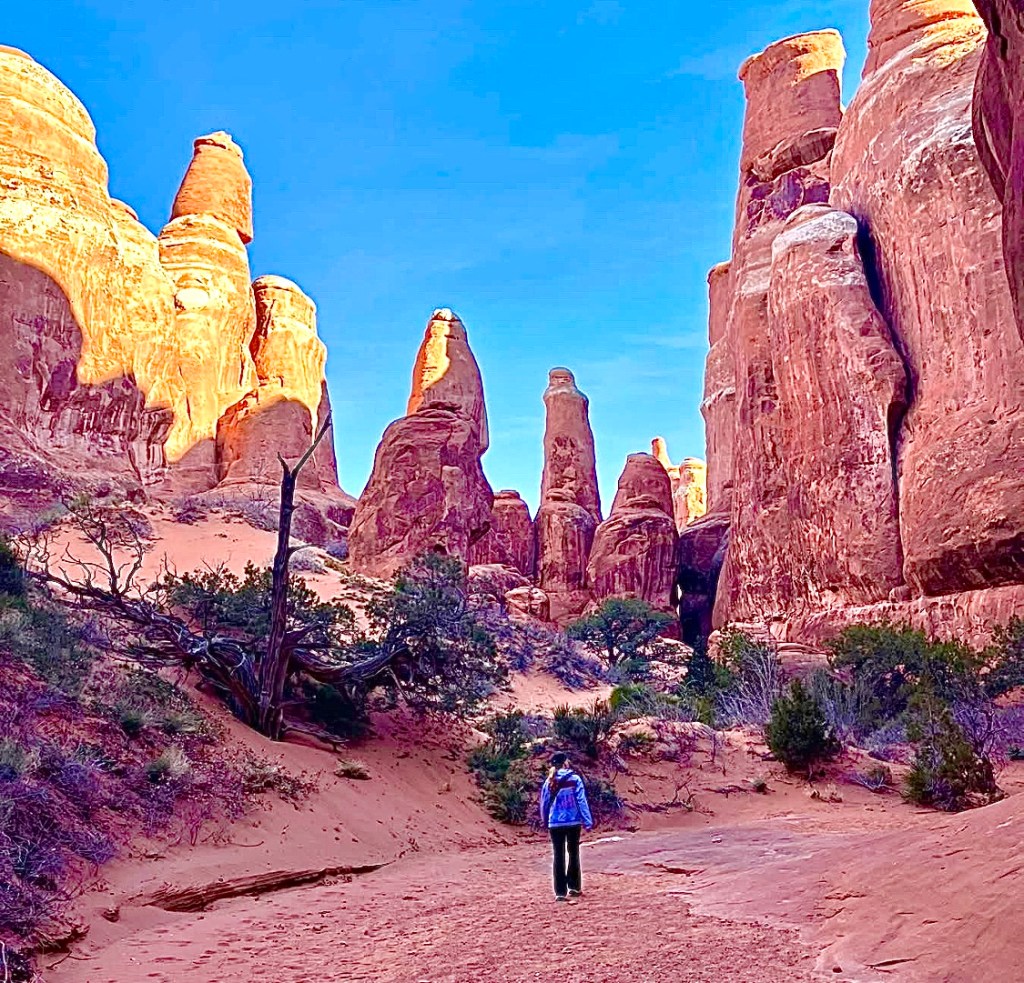 Arches National Park in southeastern Utah is most famous for its monumental sandstone arches, carved over millions of years from the high desert by rain, wind, and ice. Most of these arches are accessible by short hikes or nature walks from parking lots that often crowd to capacity. But if you love to hike in solitude and have a reasonable amount of dexterity and strength, there is nothing you’ll enjoy at Arches National Park more than a group or solo hike in the Fiery Furnace. My family and I just returned from a spring break trip to Arches and Canyonlands National Parks, and we cannot stop raving about our morning in the Fiery Furnace.
